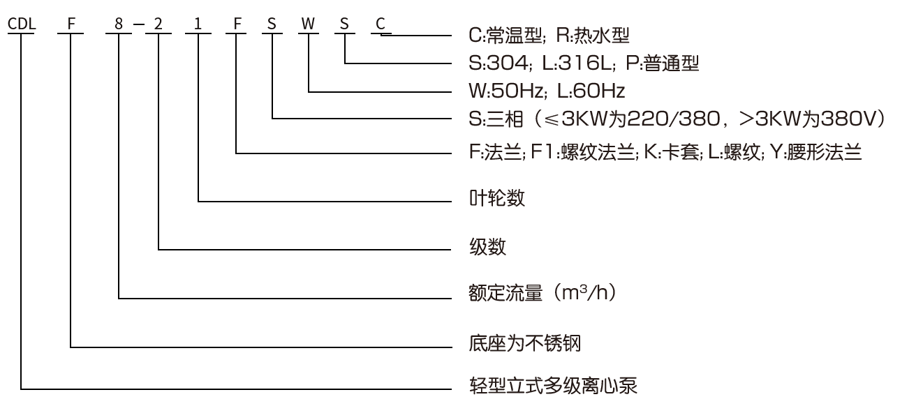 CDL/CDLF系列輕型不銹鋼立式多級離心泵是精心制造設計的非自吸立式多級離心泵,采用標準立式電機和快裝式機械密封,優化了機械密封結構,采用新穎的一套獨換式結構,可以輸送從自來水到工業液體的各種不同介質,適應于不同溫度、流量和壓力范圍,也適用于輕度腐蝕性液體更換方便。